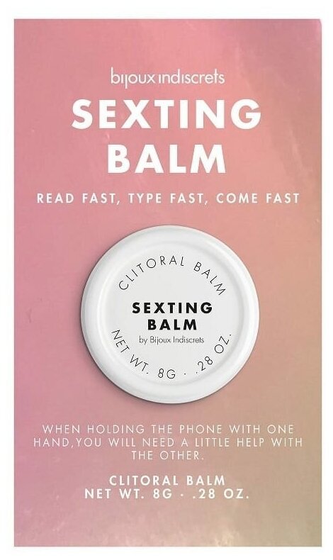 Бальзам SEXTING BALM обладает пряным ароматом имбиря, поднимает настроение и выполняет функцию дополнительной симуляции. В состав входят натуральные масла и экстракты, которые помогают ухаживать за слизистой.