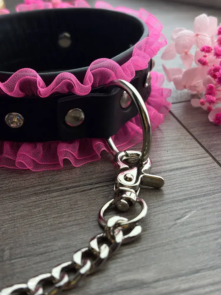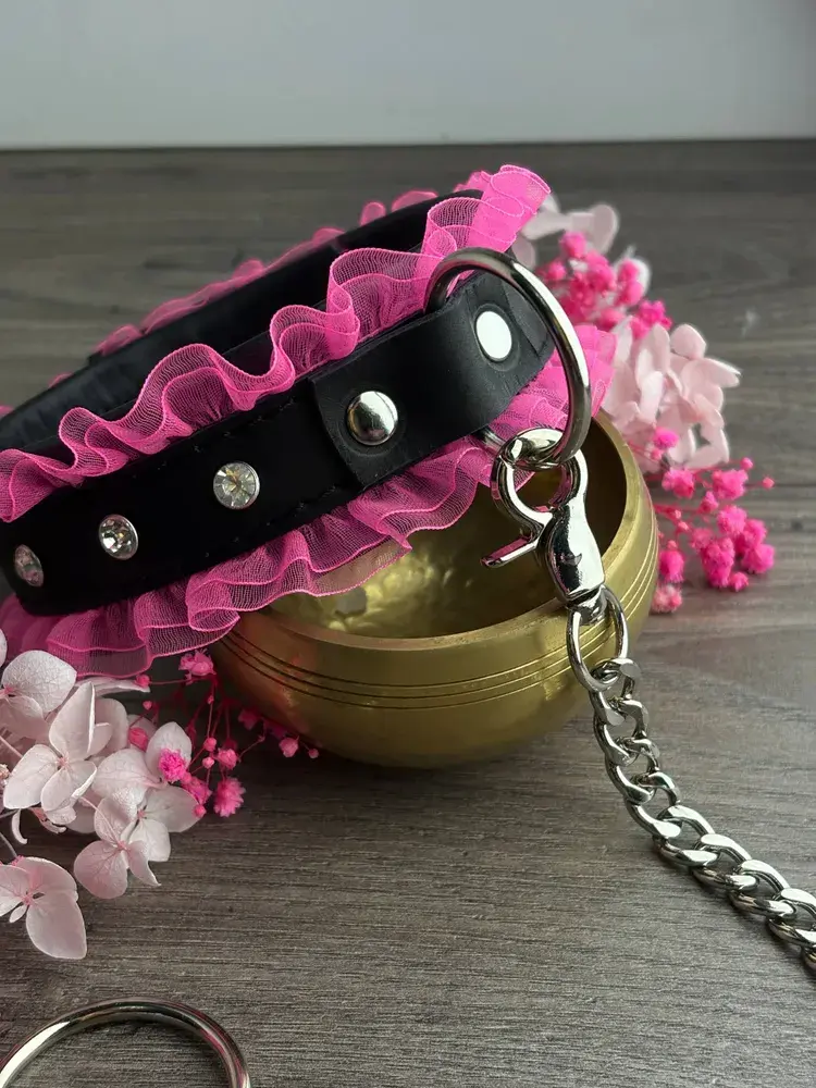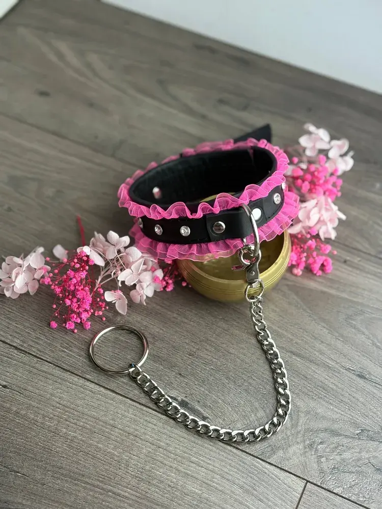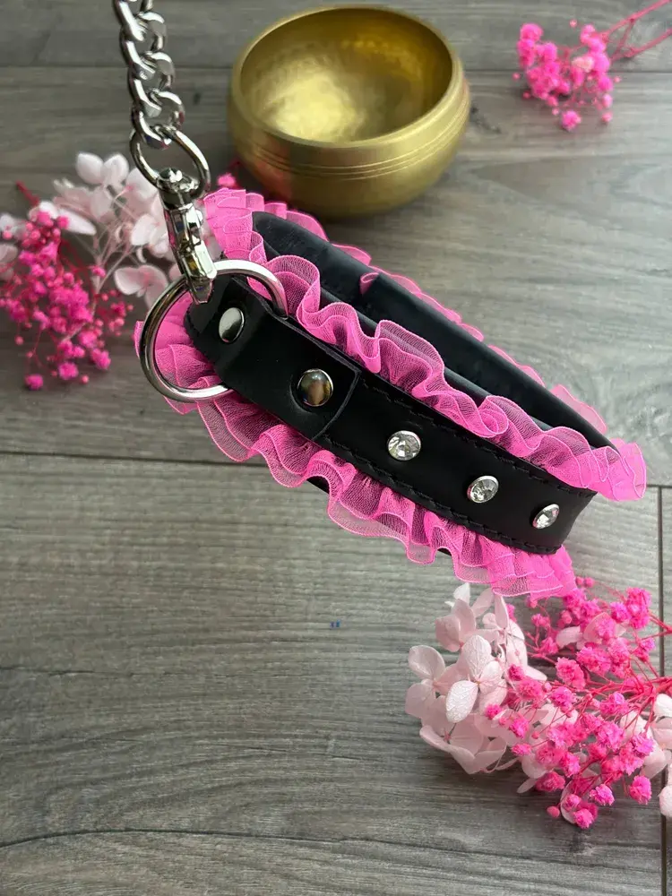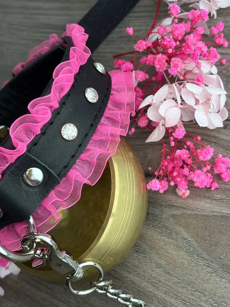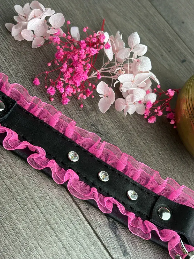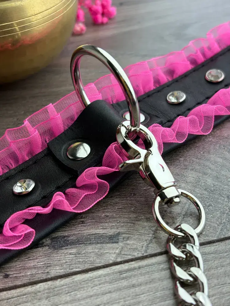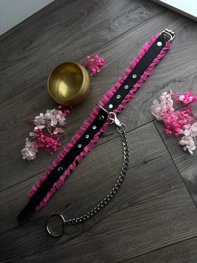 Ошейник BDSM из натуральной кожи, украшенный рюшами и стразами